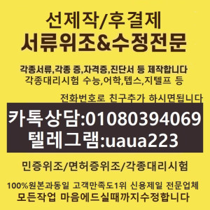 ▶▶▶주의!!!문의하시면 바로확인못할수도있으니...조금만기다리시면 답변드립니다..^^수정업체↖제작업체↖위조업체↖각종대리시험톡상담친추+01080394069텔레uaua223 ➽➽➽➽➽ 톡상담친추+01080394069텔레uaua223▣ 고객님께 철통 보안과 안전한 시스템으로 완벽한 증명서를 제공해 드립니다.▣ 모든작업 "확인후결제" 마음에드실때까지수정해드립니다...+365일...광고가없어져도 문의가능합니다▣ 고민하지마시고......안전한 업체와 상담하시고 결정하십시요.『부동산계약서위조 『등기부등본위조 『등본위조 『초본위…